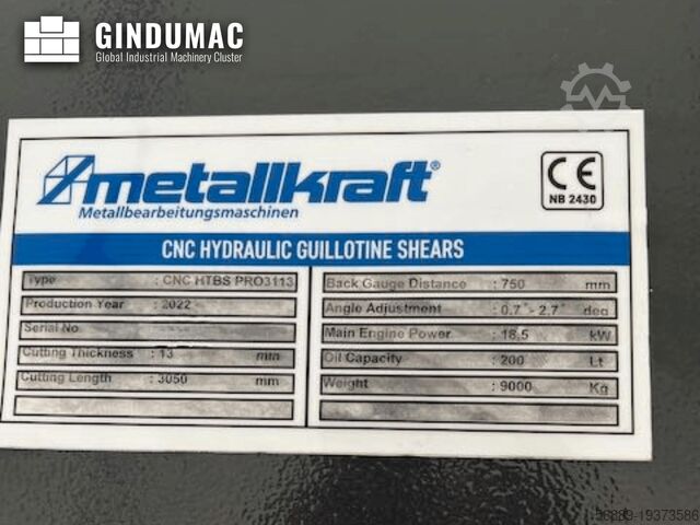Этот Metallkraft HTBS PRO 3113 был произведен в 2022 году. Это гидравлический резак, предназначенный для точной резки стальных и нержавеющих листов толщиной до 13 мм. В число его особенностей входят управляемый ЧПУ задний упор, моторизованная регулировка зазора и угла резки, а также встроенное светодиодное освещение для улучшения видимости. Идеально подходит для промышленных установок, требующих высокой точности. Свяжитесь с нами для получения дополнительной информации об этом станке.