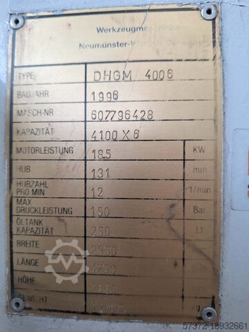 Рабочая ширина: 41100 мм, макс. толщина листа: 6 мм, ход: 131 мм, частота ходов: 12/мин, макс. давление: 150 бар, емкость масляного бака: 250 л, управление: ELGO Electric, мощность двигателя: 18,5 кВт, длина: 4750 мм, ширина: 2350 мм, высота: 1950 мм, вес: 12 т. Возможен выездной осмотр.