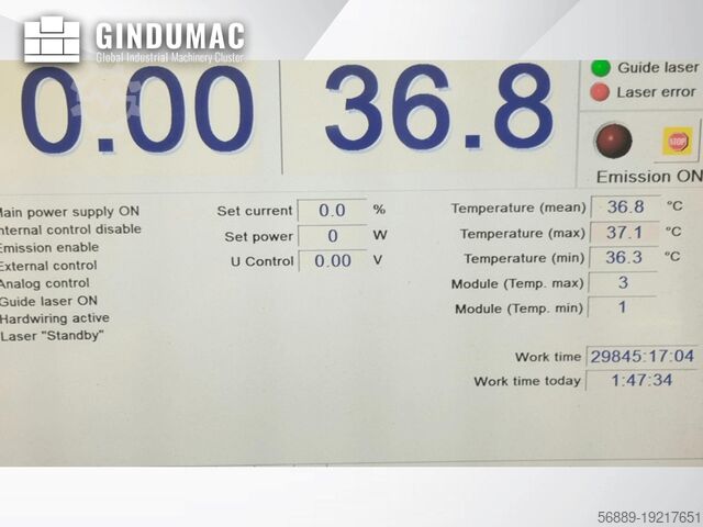 Этот MicroStep Fiber MSF 4001.20L был произведен в 2016 году. Он оснащен столом для резки 4 м x 2 м с гидравлическим устройством смены поддонов, автоматической системой подачи труб для резки труб диаметром до 200 мм и длиной 6 м, а также лазерным источником IPG YLS мощностью 4 кВт. Включает в себя оборудование для извлечения и фильтрации Donaldson. Рассмотрите возможность покупки этого станка для резки волоконным лазером MicroStep Fiber MSF 4001.20L. Свяжитесь с нами для получения дополнительной информации.