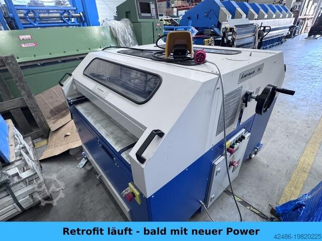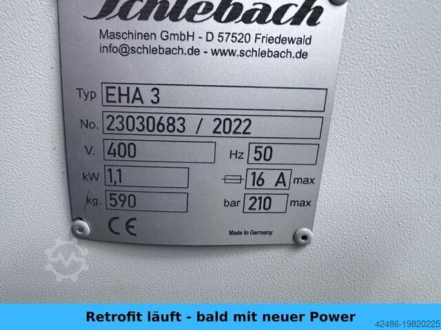 Блок высечки Schlebach EHA, в состоянии, близком к новому. Возможна обработка стандартного и клипсового рельефа, высечка, удар и отбортовка выполняются за три последовательно соединённых рабочих прохода. Позволяет изготавливать круглые вырезы, подходит для нижнего и верхнего замыкающего фальца на крышах, слуховых окнах, фасадах и парапетах перед свесами, переломами кровли, ендовами, односкатными крышами, цокольными элементами фасадов, лобовыми досками, фронтонами и оконными перемычками. Заранее профилированные параллельные картины изготавливаются в три последовательных прохода, а косые или конические картины — поочерёдно в четыре прохода. Оборудована сегментированными направляющими в верхней балке, гибочной балке и опорном столе. Различные гибочные работы, например, с ромбами и черепицей, выполняются быстро и эффективно. Подходит для зеркальной укладки и производства кассет.