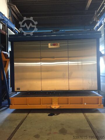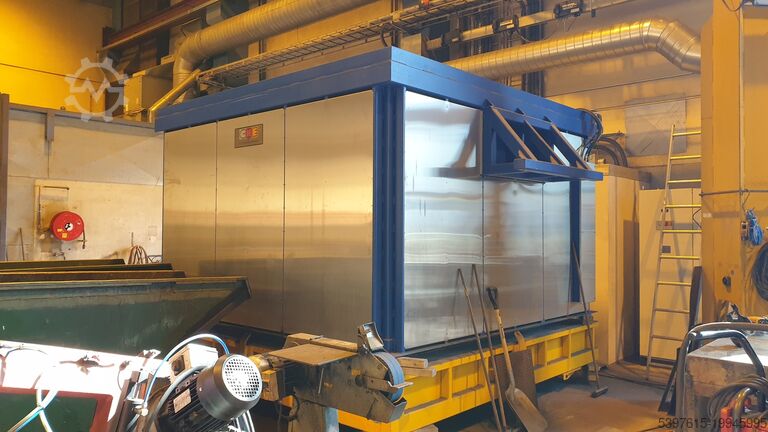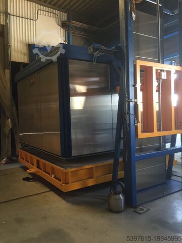 Печь для термообработки, колпакового типа. Внутренние размеры В x Ш x Д в мм: 1600x2500x2500. Максимальная загрузка: 10 000 кг. Тепловая мощность: 125 кВт. Максимальная температура: 800°C. Напряжение: 220В - 50 Гц - 3 фазы. Для других напряжений нужен трансформатор. Легко загружается на грузовик.