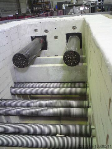 Размеры: рабочая высота около 1000 мм, длина нагрева (4 зоны) около 3750 мм, длина печи около 6000 мм, загрузочный стол около 1200 мм, общая длина около 20 м