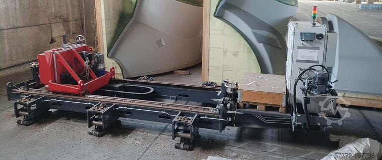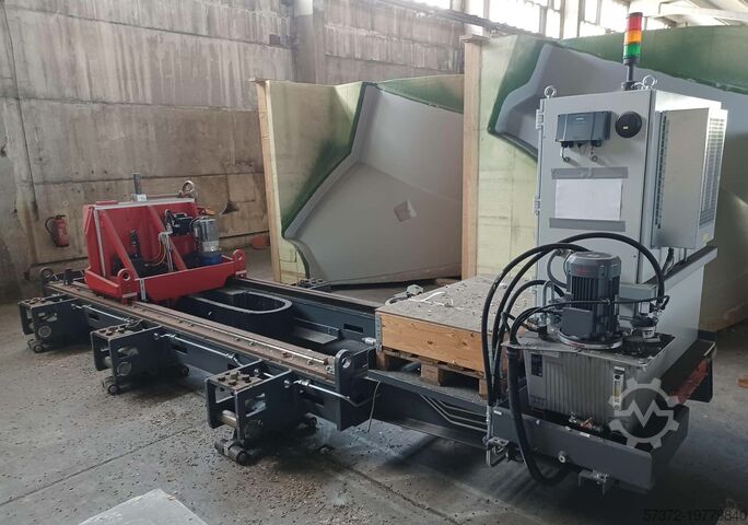 Доступна башенная пила с установочной платформой. Диапазон диаметров сегментов башни и труб: 4400мм-7500мм, потребляемая мощность: 50кВт. Ось SP (главный шпиндель): мощность: 41кВт, скорость вращения: 160об/мин, крутящий момент: 224Нм. Ход по оси Z: 130мм, мощность по оси X: 4кВт, крутящий момент по оси X: 26Нм, ход по оси X: 3250мм, подача по оси X: 2м/мин, диаметр пильного диска: 450мм, толщина пильного диска: 4,5мм, вес пильного диска: 4000кг. Общие размеры установки X/Y/Z: ок. 8000мм/3600мм/2200мм, вес: ок. 9700кг. Документация в наличии. Возможен осмотр на месте.