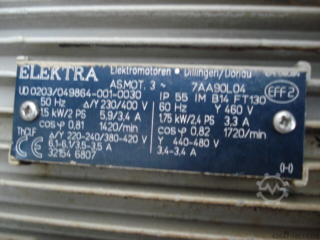 -Электрические характеристики: 50Гц; 380В; 1.5кВт; 5.9А