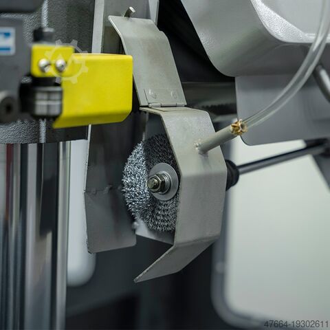 Сертификация CE, Master Saw, электробезопасность CE, синхронный двигатель с постоянными магнитами, обнаружение столкновений, светодиодное рабочее освещение, кнопки HMI +, инвертор, гидравлический зажим полотна, клапаны дифференциального давления тисков, автоматический конвейер стружки (спиральный), регулятор давления тисков, моторизованная щетка для стружки, гидравлический вентилятор охлаждения, рабочий стол с роликами, гидравлическая подача, главный привод, прецизионная передача, раздельный зажим тисков, контейнер для сбора стружки объемом 40 л, ящик для инструментов (проволочная щетка, выравнивающие подкладки, запасной цвет) Цельное пильное полотно
