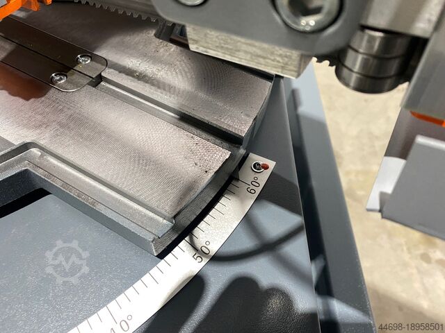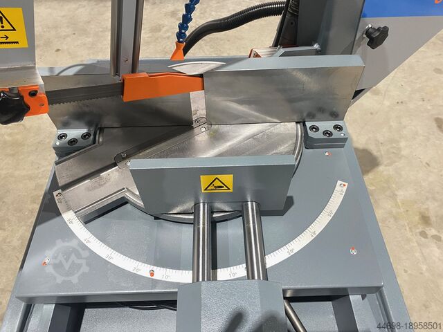 Полуавтоматическая ленточная пила с двухсторонней регулировкой угла наклона от 90° до 30° с точностью до 0,5° по шкале