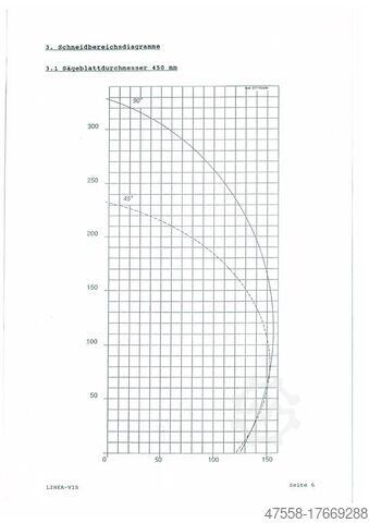 Диаметр резания в соответствии с диаграммой диапазона резания, в зависимости от скорости и пильного диска.