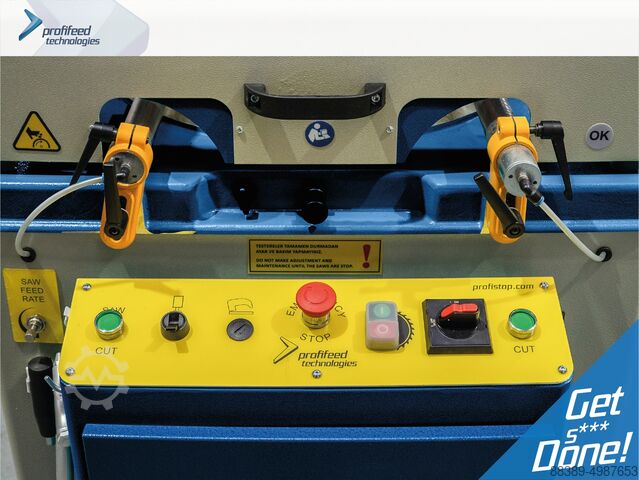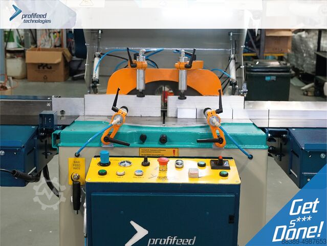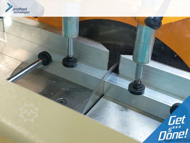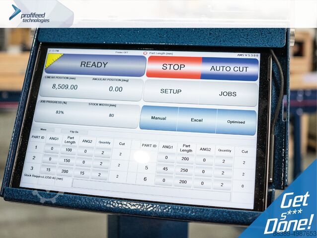 Опциональный полностью автоматический поточный оптимизатор. Автоматическое измерение длины алюминиевого профиля с помощью лазерного датчика и оптимизация списка заданий на лету в соответствии с измеренной длиной для минимизации потерь в обрезках. Автоматическая печать этикеток с номером задания / детали для каждой изготовленной детали (опция).