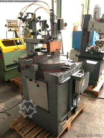 снизу и пневм. зажим заготовки сверху, пильный мост регулируется спереди назад