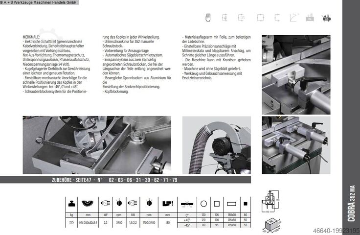 Ручная высокопроизводительная маятниковая пила для резки от 45° вправо до 45° влево алюминия и цветных сплавов, с двумя скоростями