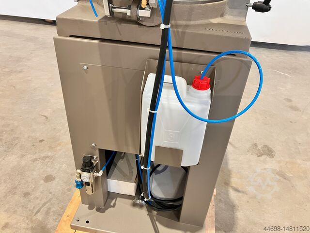 Однопильный станок 40MP оснащен горизонтальными зажимными цилиндрами для правильной фиксации профиля, минимального разбрызгивания и механической защиты зоны распила