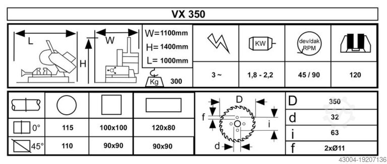 Размеры пильного полотна 350x32x63 мм
