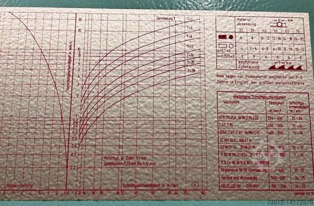СКОРОСТЬ РЕЗАНИЯ ..... 0 - 40 ММ СЕК. БЕССТУПЕНЧАТАЯ РЕГУЛИРОВКА РЕВЕРСА 135 ММ/С