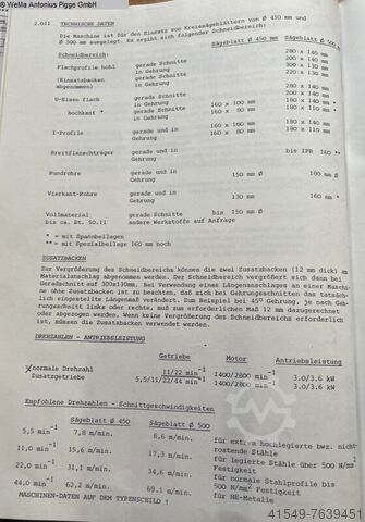 Диаметр пильного диска 450/500 мм Диаметр резания мм Ход мм Общая требуемая мощность 3,6 кВт Вес машины прибл. 1130 т Необходимая площадь прибл. м Rsc R Nc Ifeilfp Nsnjw - Циркулярная пила полуавтоматическая - гидравлический