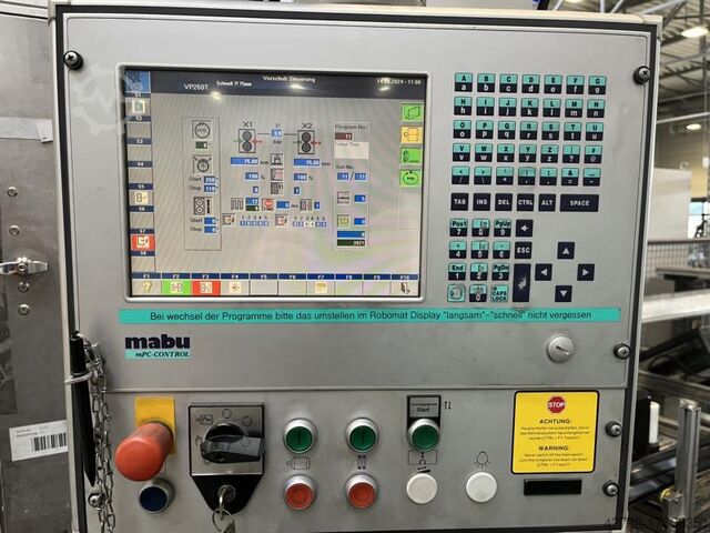 Бывший в употреблении четырехколонный автоматический вырубной пресс MABU с управлением MPC200 в очень хорошем техническом состоянии.