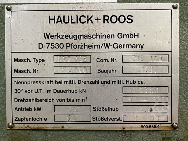 Эксцентриковый пробивной пресс HAULICK + ROOS тип RVD 125