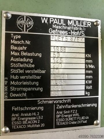Одноколонный эксцентриковый пресс MÜLLER GEFREES тип PDET 5 S/EK