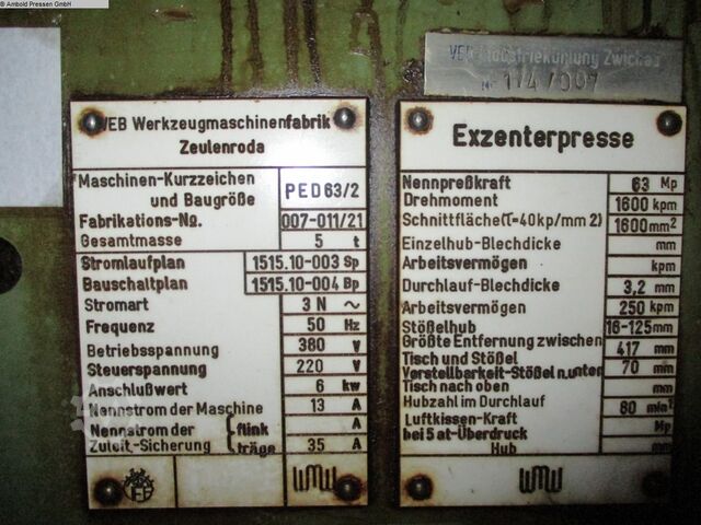 Расстояние стол - плунжер 417 мм