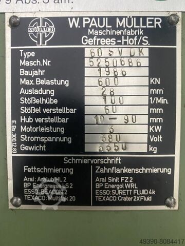 Одноколонный эксцентриковый пресс MÜLLER GEFREES тип 60 SV DK (идентичный по конструкции ExP60)