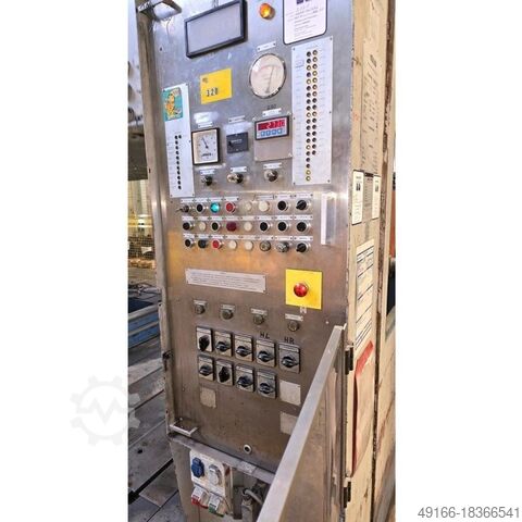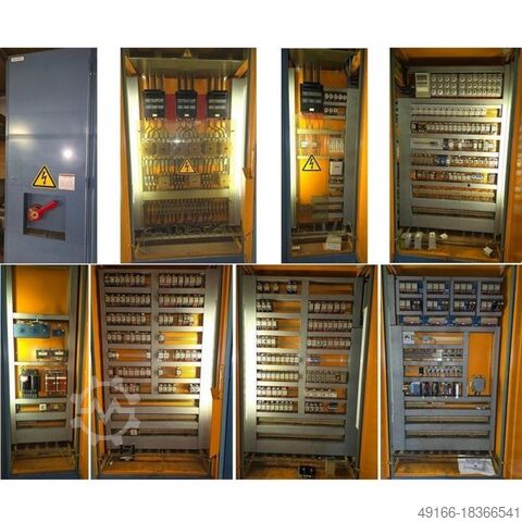 с масляно-гидравлическим приводом, тяговая подушка в столе, тяговая подушка в ползуне (площадь тяговой подушки ок. 3410 x 1650 мм), демпфирование удара при резке/ограничение хода пуансона (ход шпинделя ок. 500 мм, макс. усилие демпфирования пуансона ок. 750 т, макс. ход демпфирования пуансона ок. 30 мм), регулируемый в зависимости от давления/времени и пути