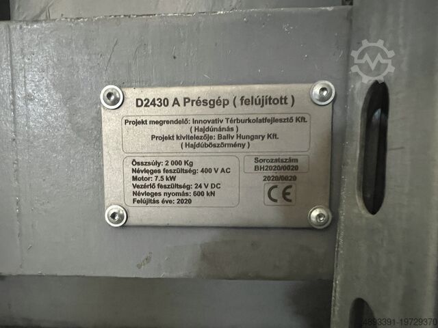 Предлагаем к продаже гидравлический пресс D2430 A, полностью восстановленный в 2020 году. Оборудование находится в отличном рабочем состоянии и размещено в городе Хайдюнанаш, Венгрия.