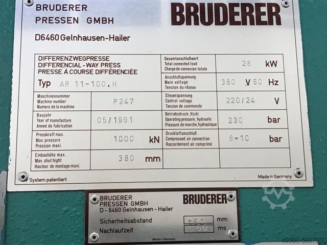Гидравлический дифференциальный пресс, гидравлический пресс с шарнирным соединением, автоматический вырубной пресс BRUDERER - LEINHAAS Тип AR 11-100.H