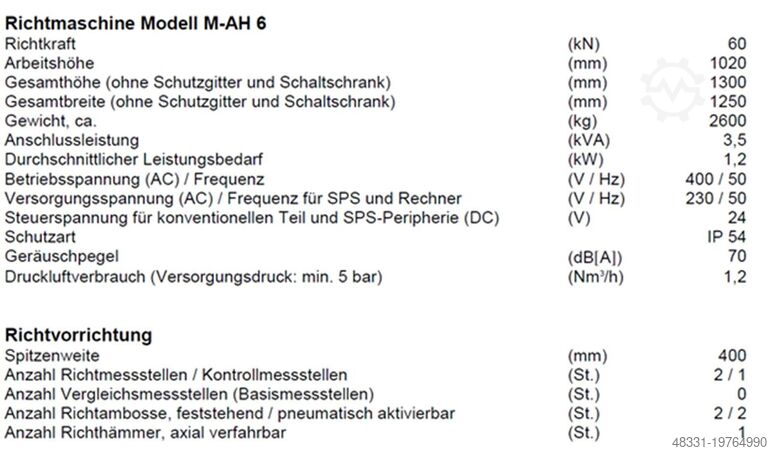 Выпрямительный пресс - горизонтальный MAE M-AH 6