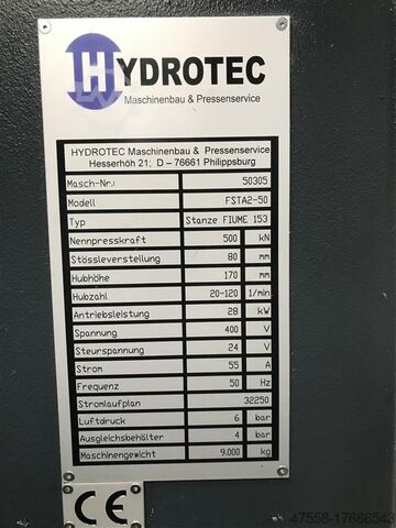Усилие пробивки: 500 кН