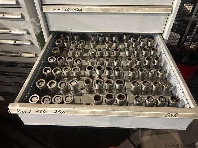 - Различные штамповочные инструменты, матрицы, съемники, включая высококачественные выдвижные шкафы Ista для хранения (все четыре блока полностью заполнены)