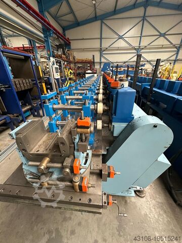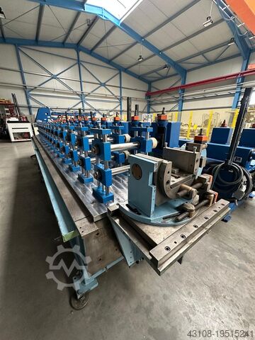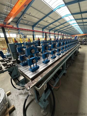 Минимальный заказ составляет 8 станций, цена за одну станцию — 4 000 евро. Станции новые. Линия состоит из станций для профилирования валов диаметром 50 мм с пазом под шпонку 8 мм. Подача материала от 0,4 до 2,5 мм, ширина ленты 320 мм. На каждом столе размещается 8 станций, установлен мотор мощностью 15 кВт с редуктором. 4 комплекта станций смонтированы на стальных несущих пластинах размером 45 x 700 x 1500 мм, что обеспечивает замену роликов и быструю установку различных сменных модулей готовых профилирующих сегментов. Данная конфигурация включает два сегмента-стола по 8 станций каждый, что в сумме даёт 16 профилирующих станций. Указанная цена действует за комплект станций, установленных на конкретном столе. Столы могут быть сконфигурированы и собраны под требуемое количество станций (например, 8, 16, 24, 32) в зависимости от задачи профилирования. Стол оснащён направляющей для ленты, турецкой клеткой, выравнивающей головкой, а также устройством для выдачи профиля перед гильотинным резом, летящей пилой или фиксированным приёмником. Предлагаем различные конфигурации таких решений для данных столов. При замене валов можно достичь максимальной входящей ширины материала до 550 мм.