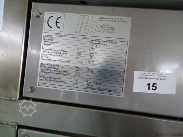 Холодильная установка HEIDINGER, чиллер, № l-1119, год постройки 2012