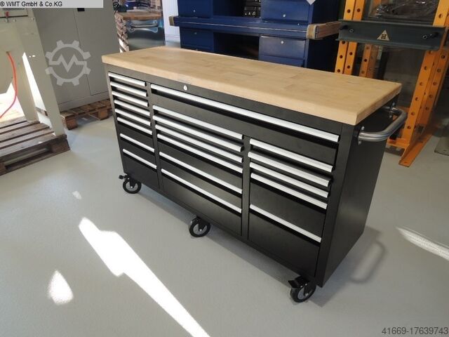 Тележка для мастерской с 20 выдвижными ящиками и столешницей из массива дерева 40 мм