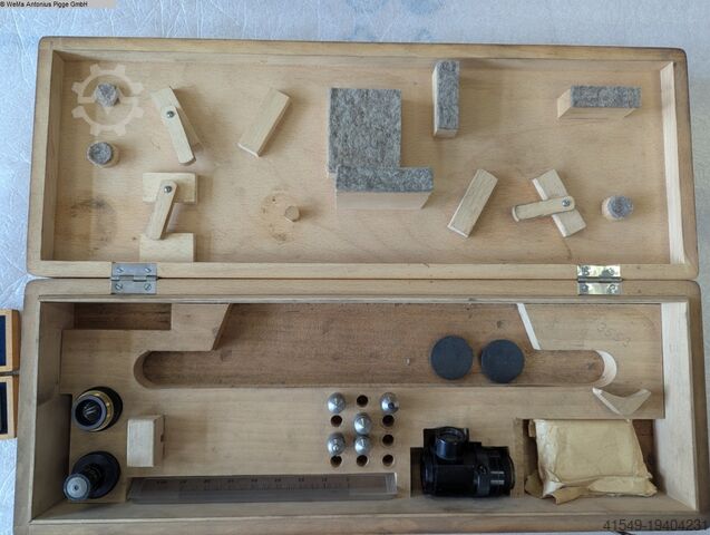 Аксессуары см. на фото: различные алмазные индентора для испытаний твердости, эталонные пластины твердости, молотковый твердомер, микрометр для предметных стекол, объективы Carl Zeiss, запасные лампы Osram