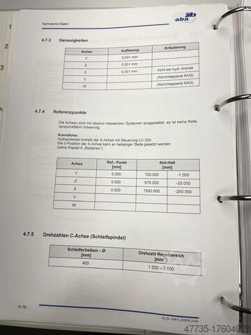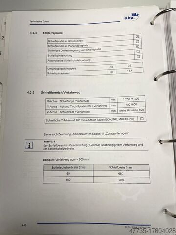 Ось Z: ширина шлифования см. примечание, ход 600 мм.