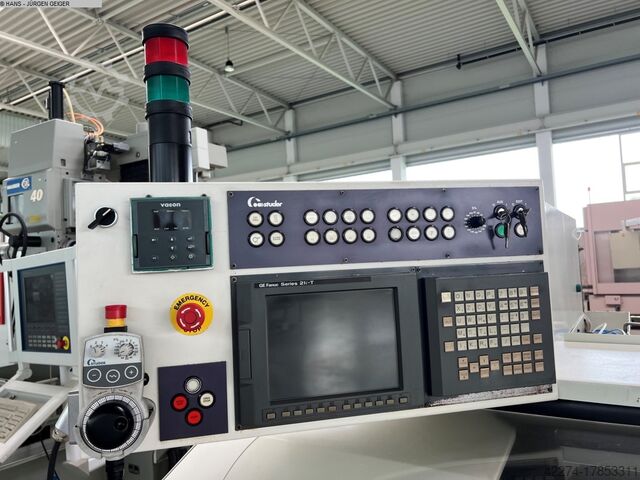 • 3-осевой ЧПУ-контроллер FANUC типа 21i-T со всеми необходимыми циклами шлифования, измерения и правки, такими как шлифование уступов, прямолинейное шлифование/продольное шлифование, шлифование нескольких диаметров, шлифование конусов, автоматическая правка и т. д., а также с ручным блоком управления с электронным маховиком