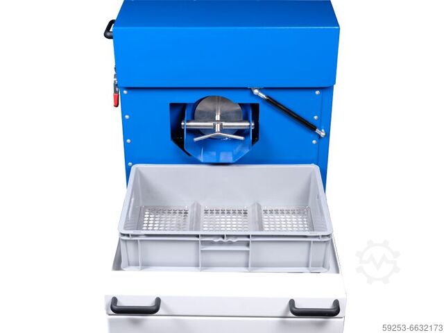 Корытные вибраторы отличаются компактной конструкцией и универсальным применением. Благодаря их U-образным рабочим ножам можно обрабатывать очень большие заготовки относительно размеров системы. Наш телемоб уникален тем, что все компоненты, необходимые для вибрационной отделки, компактно смонтированы на передвижной тележке. Встроенный каскад очищает рабочую жидкость, заготовки можно отделять с помощью сита, а различные шлифовальные инструменты можно хранить в выдвижных отсеках.