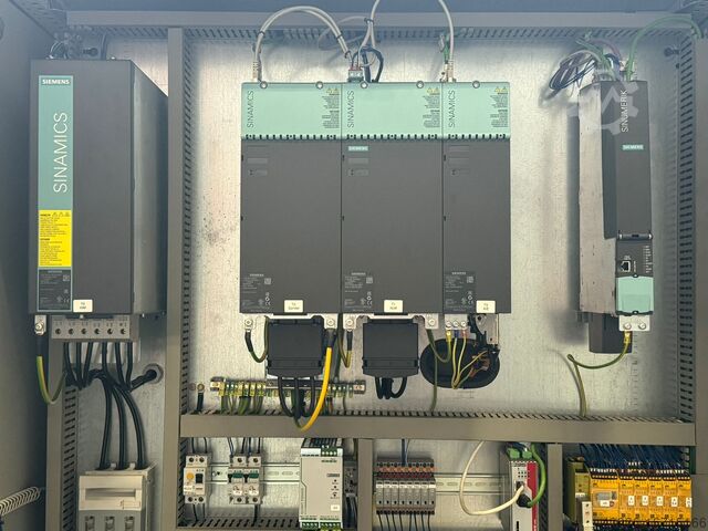 Финишная обработка уплотнительных поверхностей Финишная обработка уплотнительных поверхностей труб длиной около 17 м выполняется с помощью узла подачи с ЧПУ и торцовочного суппорта с ЧПУ и 2 держателями инструмента ABS для токарного инструмента, измерительных датчиков или измерительных щупов. Заготовка сначала измеряется с помощью измерительных датчиков в головках ползунов и выравнивается с помощью регулируемых роликовых опор. Труба гидравлически затягивается плавающими губками, когда она ложится под прямым углом и центрируется по отношению к торцевой головке суппорта. Сменные измерительные датчики рассчитывают, как обработать поверхность, которая