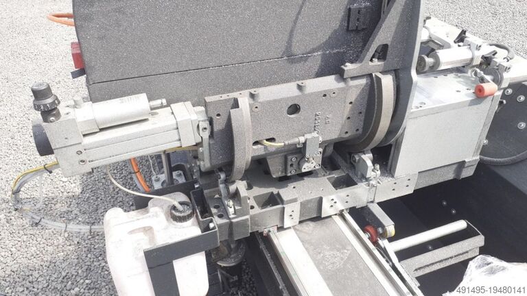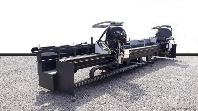 Автоматическая двуголовочная пила для резки алюминиевых и ПВХ-профилей с электронным управлением и пневматическим наклоном голов. Оснащена виртуальной осью наклона режущих голов.