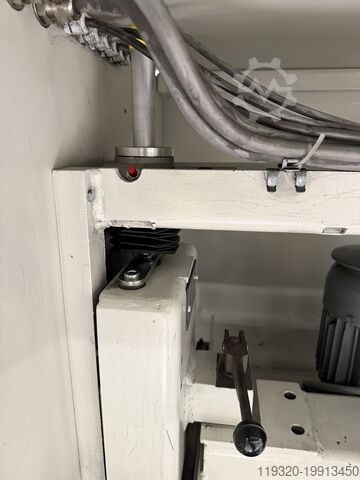 Плавная регулировка подачи 0,5–5 м/мин, частотно-регулируемая, автоматическая регулировка толщины детали с пусковым выключателем (Joucomatic), разгрузочный стол 400 мм с интегрированной щеткой для конвейерного привода 0,25 кВт, DC-тормоз. Механизм регулировки по высоте, вакуумный вентилятор, блокировка агрегатов, ремни заменены — машина полностью работоспособна и в очень хорошем техническом состоянии. Отрегулирована по инструкциям/стандартам производителя.