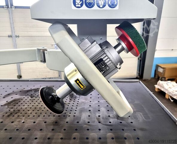 Шлифовальная головка с двумя вращающимися инструментами (шлифовальный круг или щетка) установлена на поворотном кронштейне.