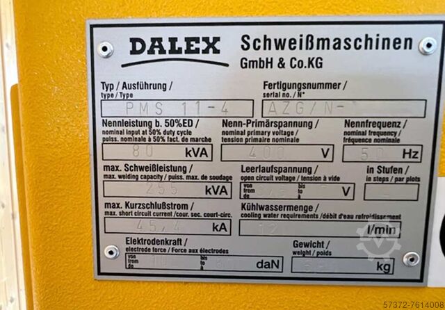 Электродное усилие: 100даН, мощность сварки: 255кВА, номинальная мощность: 80кВА, с системой охлаждения DALEX DRF 5.2.