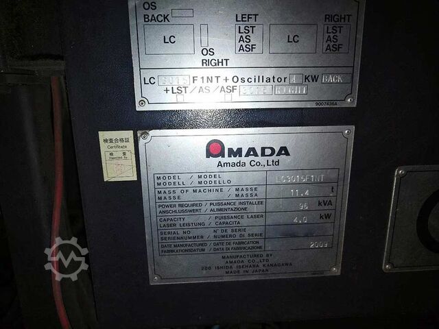 Доступна система лазерной резки Amada с ЧПУ CO2 и автоматизированной системой хранения LKI. 1) Мощность лазера: 4 кВт (4000 Вт), перемещение X/Y/Z: 3100 мм/1550 мм/100 мм, макс. нагрузка на стол: 920 кг, макс. толщина материала сталь/нержавеющая сталь/алюминий: 20 мм/12 мм/10 мм, размеры лазерной системы X/Y/Z: прибл. 10000 мм/4300 мм/2100 мм, вес: прибл. 11000 кг. 2) Поддоны: 8, поддоны для резки: 2, сырье: 2/3, выгрузка: 4/3, макс. высота выгрузки: 2200 мм, макс. размеры материала X/Y: 3050 мм/1525 мм, мин. размеры листа: 2000 мм/1000 мм, высота: 5400 мм. Документация доступна. Возможен выезд на место.