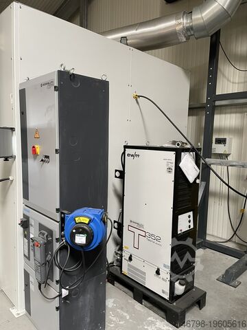 Промышленный робот Yaskawa MOTOMAN AR 2010 с управлением YRC-1000. Габариты оборудования: 3000 × 2600 × 2800 мм (ДxШxВ). Грузоподъемность позиционера: 250 кг. Интерфейс для управления сварочным оборудованием EWM, системная интеграция, контроль TCP.