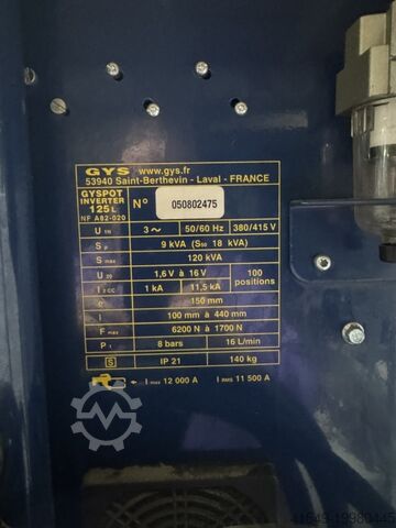 Усилие на электродах: 550 Н при 7 бар с держателями электродов длиной 100 мм