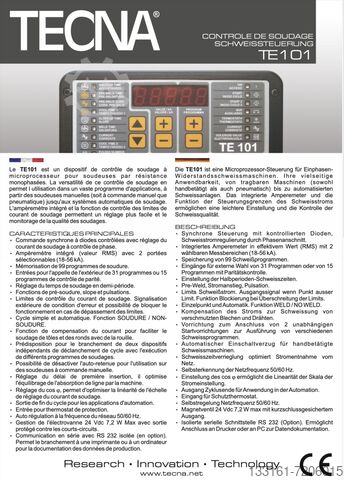 - TE101 с цифровым отображением сварочного тока, нарастания тока и др.