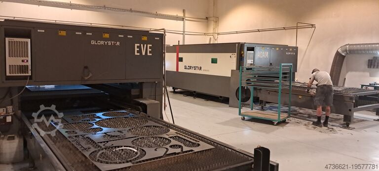Очень хорошо работающая лазерная установка GLORYSTAR - 1500 x 3000 мм с обменным столом, лазер IPG 3,0 кВт, использовалась нами для производства персонализированных металлических табличек — в основном в диапазоне 2,0 мм, но, разумеется, может резать материалы и большей толщины. Станок используется ежедневно и может быть продемонстрирован в рабочем состоянии под напряжением. В цену входят осушитель воздуха и воздушный резервуар. Техники Glorystar доступны для переоборудования.