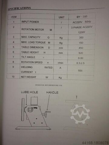 Сварка поворотный стол KT 300 нагрузка горизонтально наклонена 300 кг, мощность 150 кг 220В, 50 Гц диаметр стола 450 мм высота 500 мм диапазон наклона непрерывно над кривошипным редуктором двигателя 0 â€"90" скорость 0,3 â€" 2,5 U / мин вкл. ногу дистанционного управления зарядки: быстрый Диаметр патрона 300 мм, 450-â€" ¬
