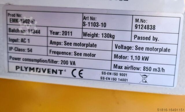ВСАСЫВАЮЩЕЕ УСТРОЙСТВО PLYMOVENT EMK 1602-H