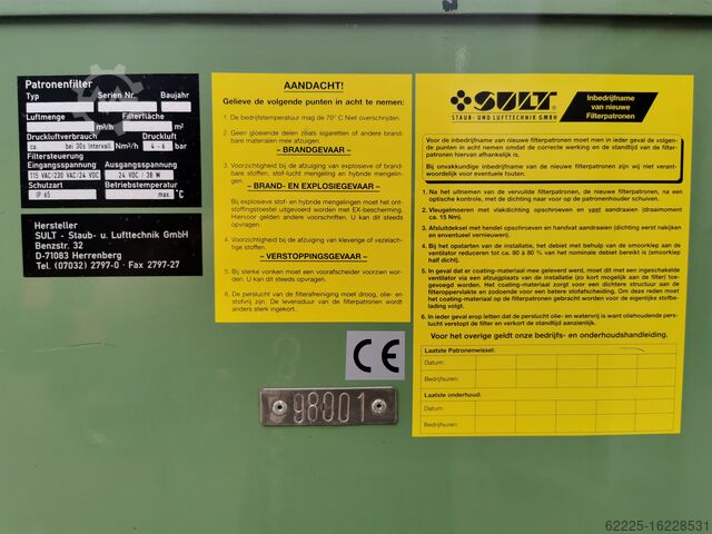Фильтр очищается пневматически с помощью импульсов сжатого воздуха во время работы, что обеспечивает высокую эффективность устройства.