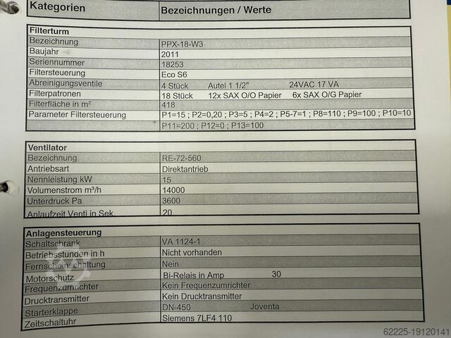 Фильтр очищается импульсами сжатого воздуха во время работы, что обеспечивает высокую эффективность работы устройства.